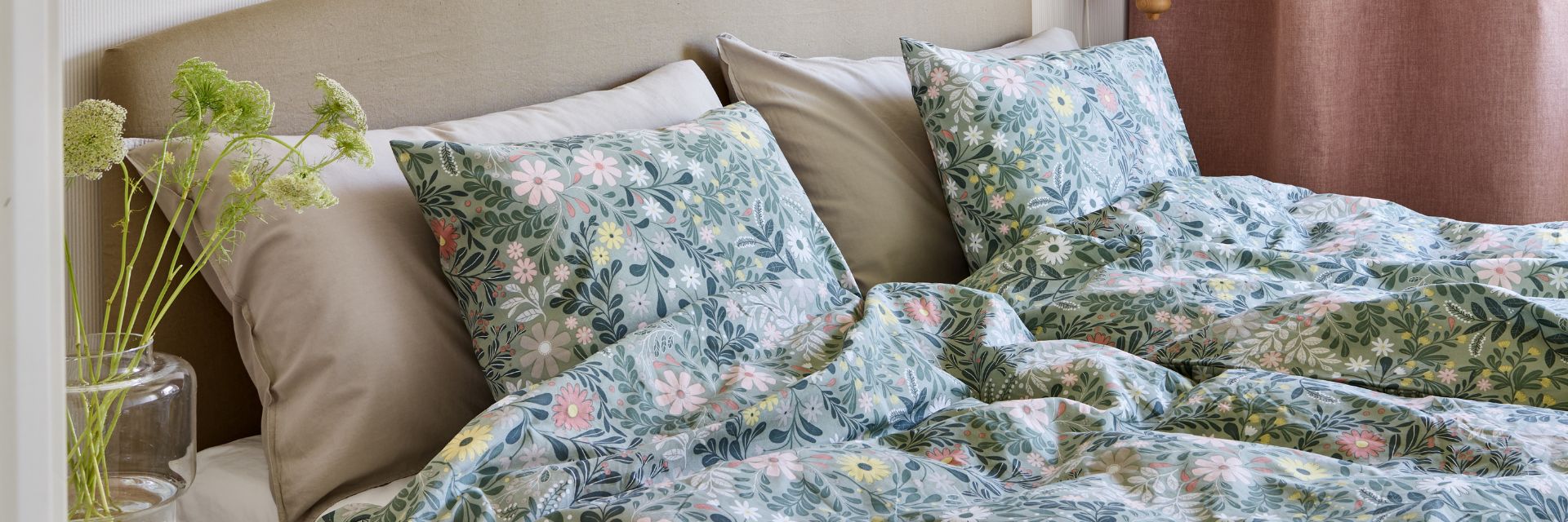I vårt sortiment hittar du både tidlösa basprodukter samt nyheter under året. Vi jobbar både med svenska och utländska designers för att skapa unik och vacker hemtextil. Vår textil håller en hög kvalitet och vi strävar efter att vara en del av en hållbar framtid. Du hittar mer om våra hållbarhets- och miljömärkningar här